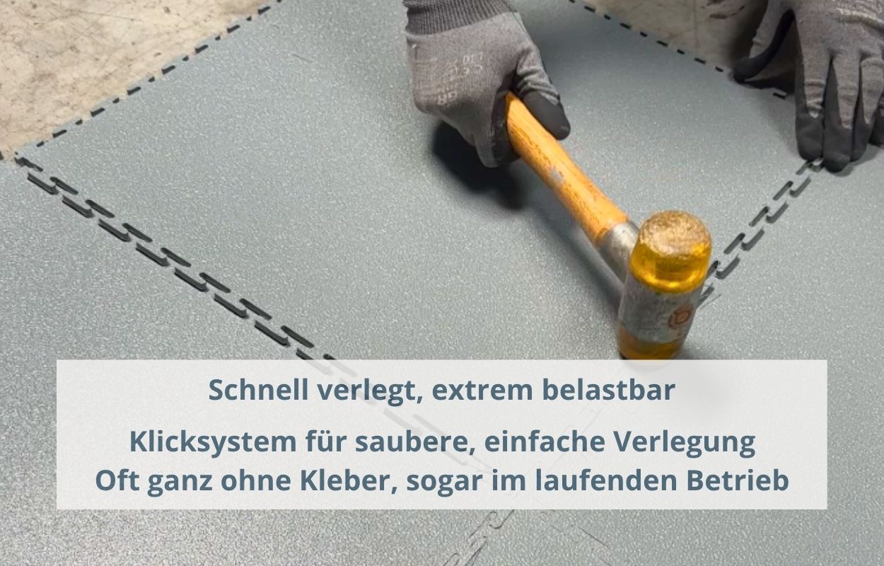 Robust, schalldämmend und schnell verlegt – optimal für Produktionshallen, Lager, Werkstätten & Staplerverkehr.