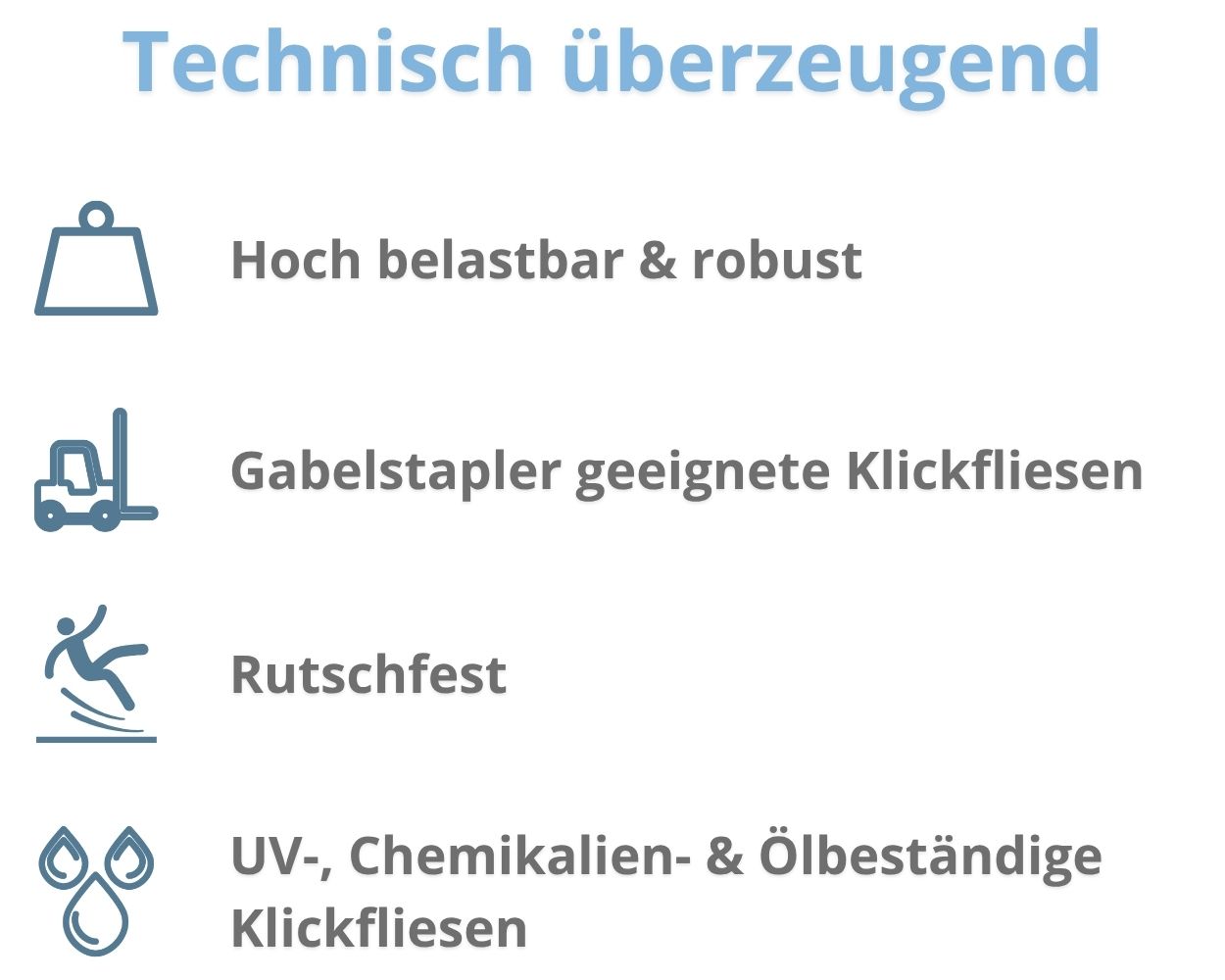Klickfliesen für Garage, Industrie & Gewerbe. Belastbar, ölbeständig & rutschfest.