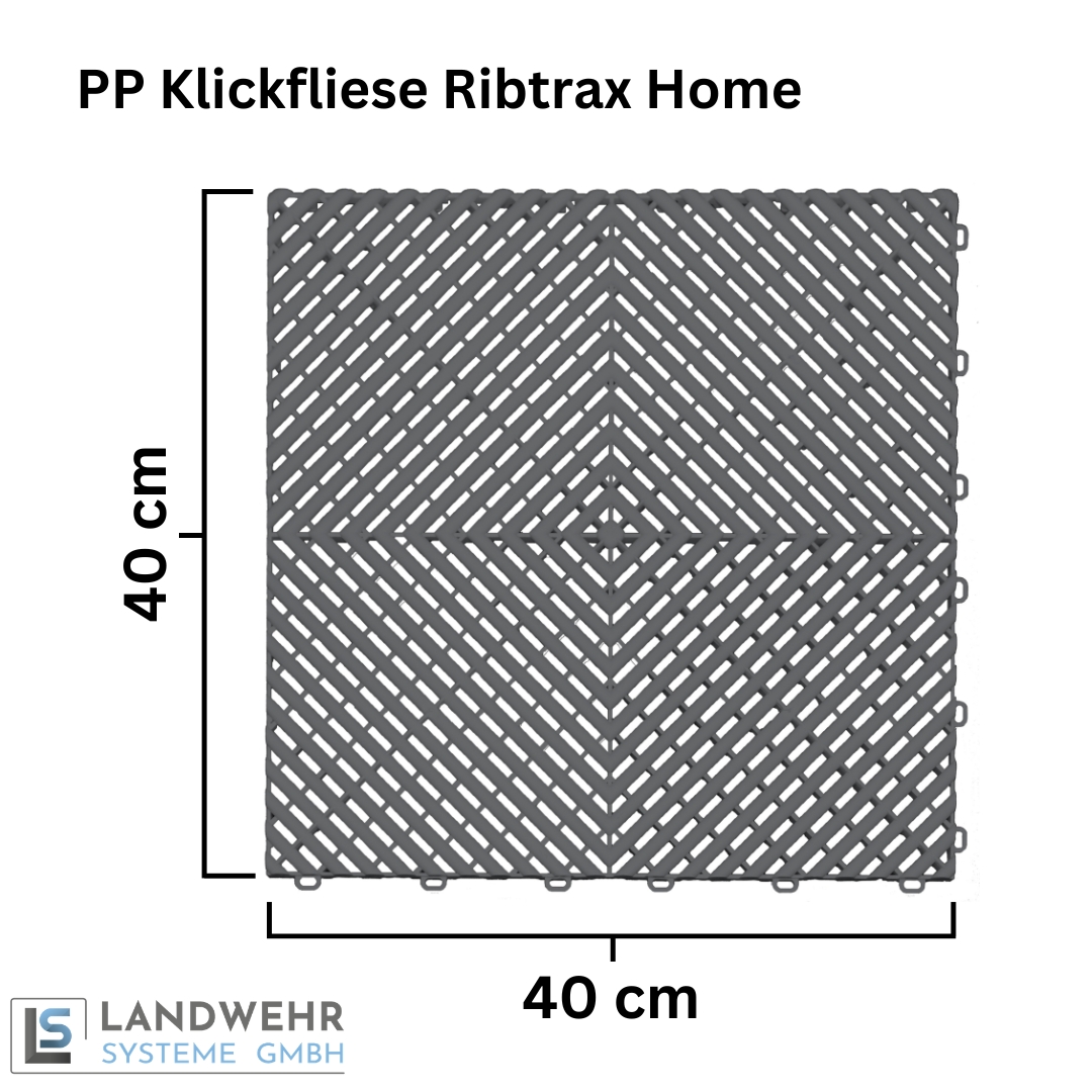 Der modulare Bodenbelag Ribtrax HOME ist die ideale Klickfliese für private Garagen und den Hobby-/Wohnnahbereich. Die HOME-Serie basiert konstruktiv auf der seit vielen Jahren bewährten Ribtrax-Technologie, nutzt aber ein für den Privatbereich abgestimmtes Polypropylen.
