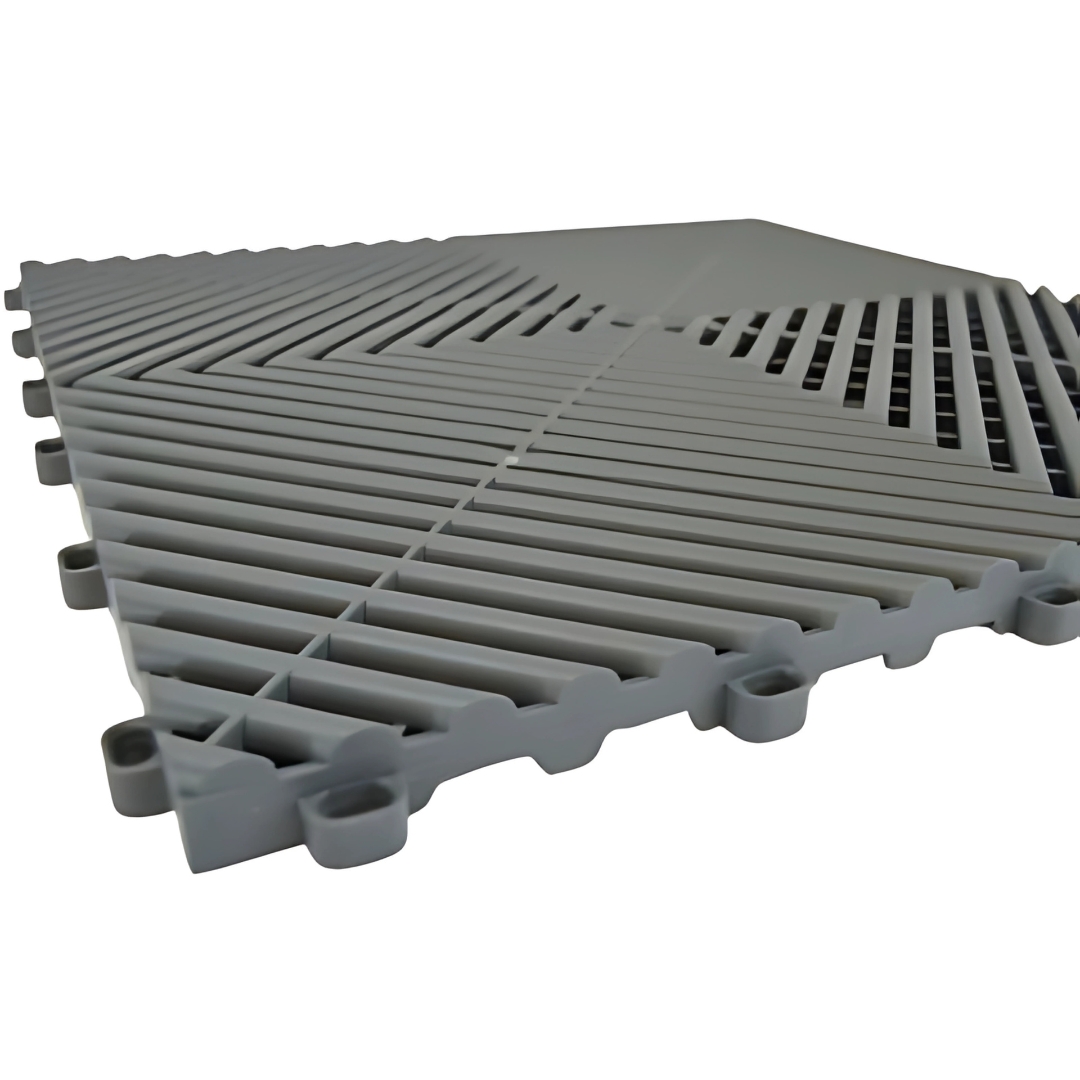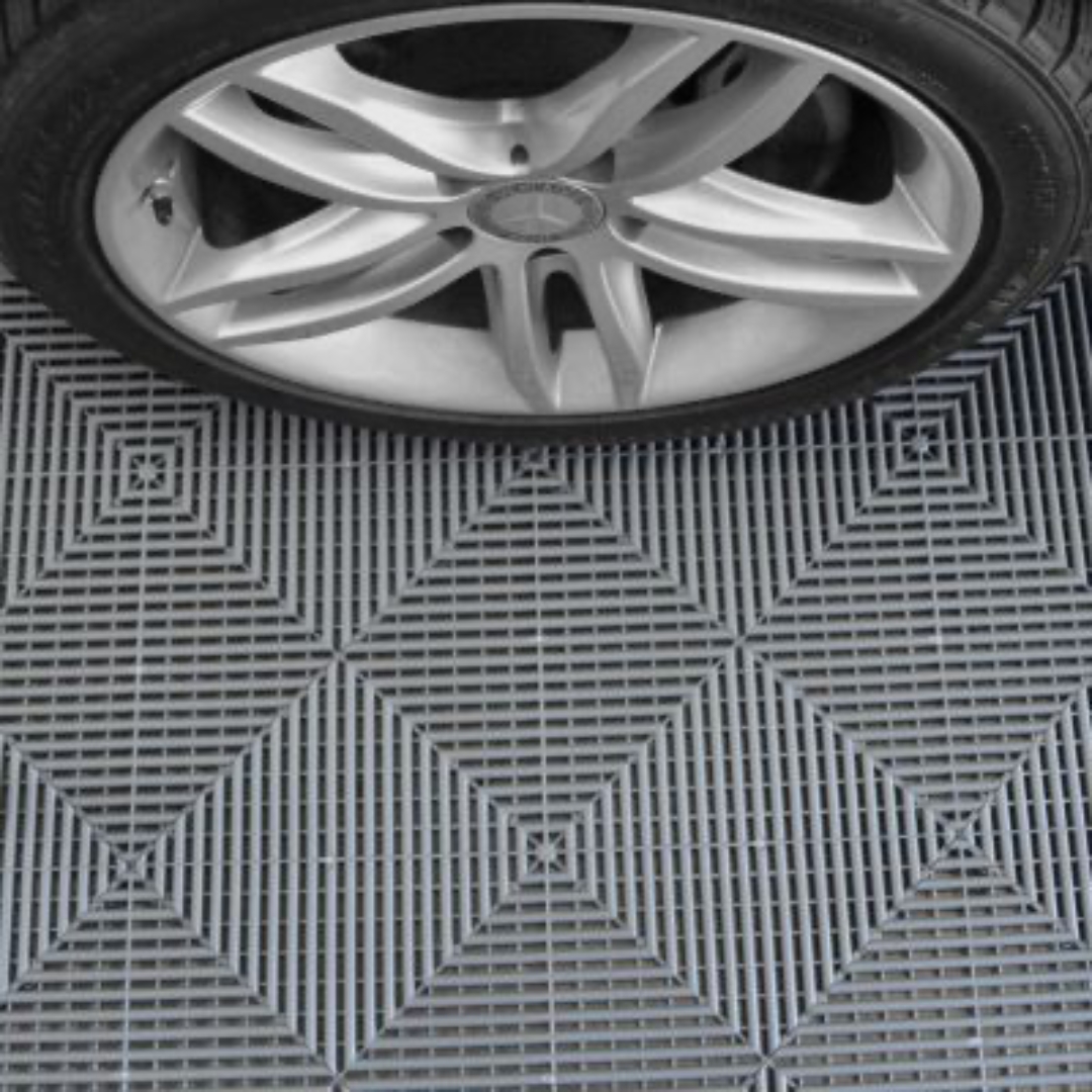- ✅ Optimale Luftzirkulation: Die perforierte Gitterstruktur hält den Garagenboden trocken und sauber – Staub und Flüssigkeiten fallen durch die Fliesen.