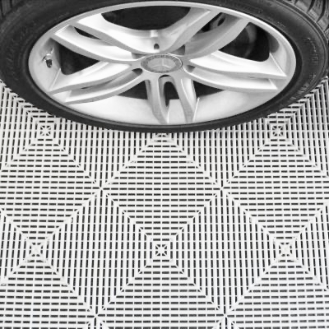 - ✅ Optimale Luftzirkulation: Die perforierte Gitterstruktur hält den Garagenboden trocken und sauber – Staub und Flüssigkeiten fallen durch die Fliesen.